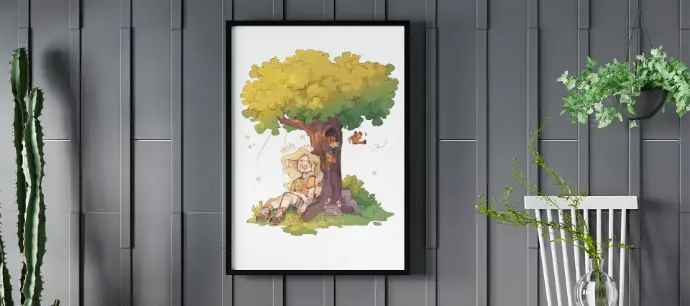 Ce design réalisé par Koda illustre une scène mignonne, apaisante et pleine de charme !