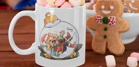 On dit que cette boule réapparaît chaque année pour capturer de la joie... Une scène féerique illustrée par Reiko, qui donne vie à la magie des fêtes dans l’univers de Flanny !