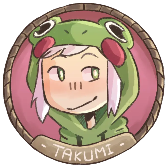 Appelé Taku, Takou ou encore Takoubelle, c'est une grenouille calme qui apprécie la tranquilité. Il affectionne les coins paisibles, comme les mares où il prend plaisir à pêcher !